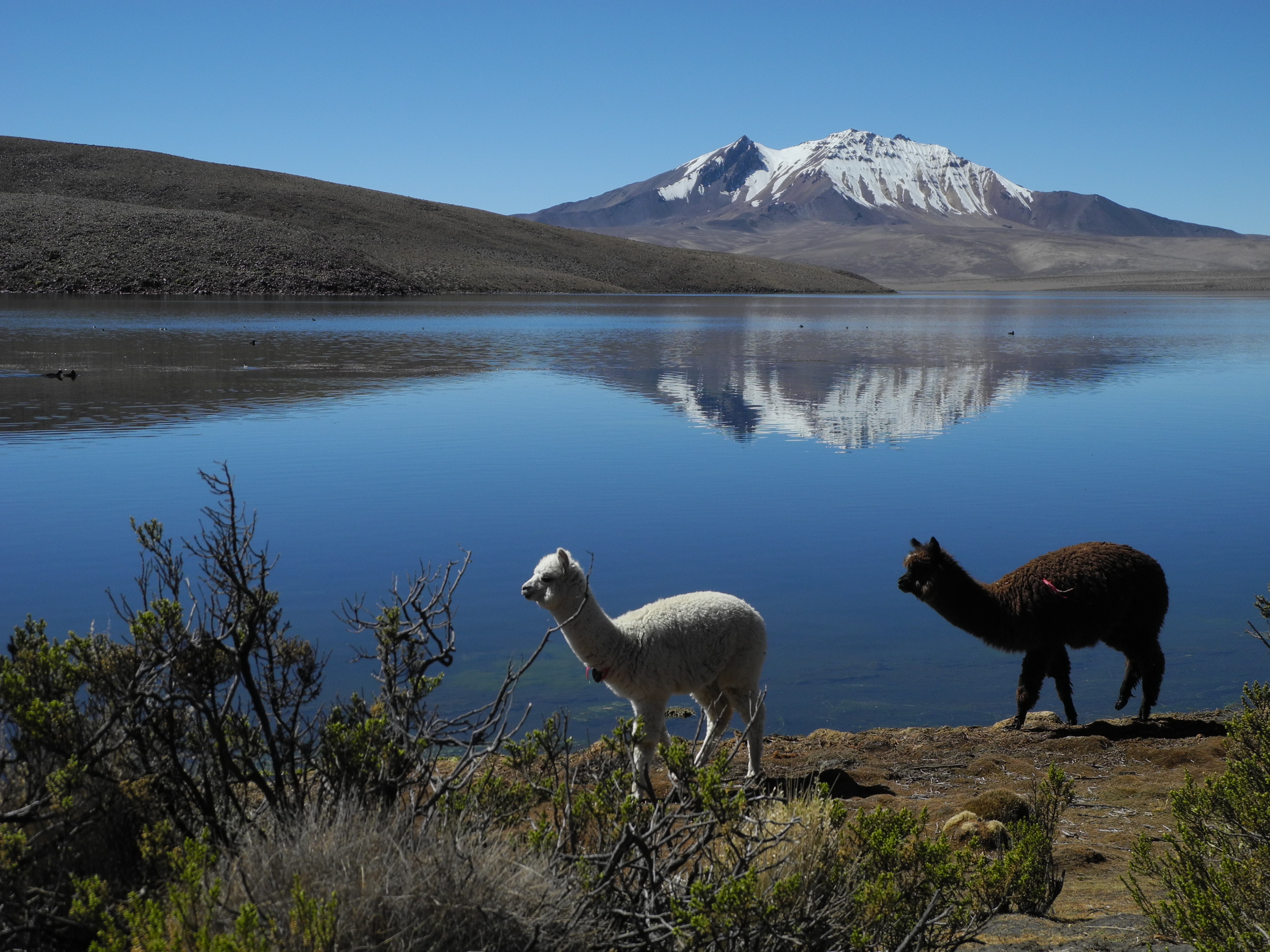 Continuaremos nuestra ruta para acercarnos al destino más importante y alucinante de la excursión, el Lago Chungará. Ingresaremos al Parque Nacional Lauca, un lugar inigualable que cuenta con paisajes increíbles, una hermosa flora y una fauna excepcional, un destino ideal para quienes disfrutan de las excursiones en contacto con la naturaleza. Iniciaremos una pequeña caminata donde podremos apreciar colonias de vizcachas en el sector de las cuevas, parte de la fauna típica de la zona. Obtendremos la vista privilegiada de una exótica flora y fauna salvaje y de un escenario majestuoso, los volcanes gemelos Payachatas. Y allí frente a nuestros ojos se impone un destino imperdible y uno de los principales atractivos del Parque Nacional Lauca, el imponente Lago Chungará, uno de los lagos más altos del mundo (4.517 m.s.n.m), ubicado a los pies de los Payachatas, un paraje increíble de enorme belleza natural. En el lugar podrá disfrutar de la increíble riqueza nativa que ofrece el territorio donde habitan más de 130 diferentes especies de aves, entre las que se destacan el flamenco chileno, el yeco, la guallata, el cóndor y la tagua gigante. Además de diferentes especies animales, tales como alpacas, tarucas, vizcachas, guanacos, vicuñas, pumas, llamas y zorros.